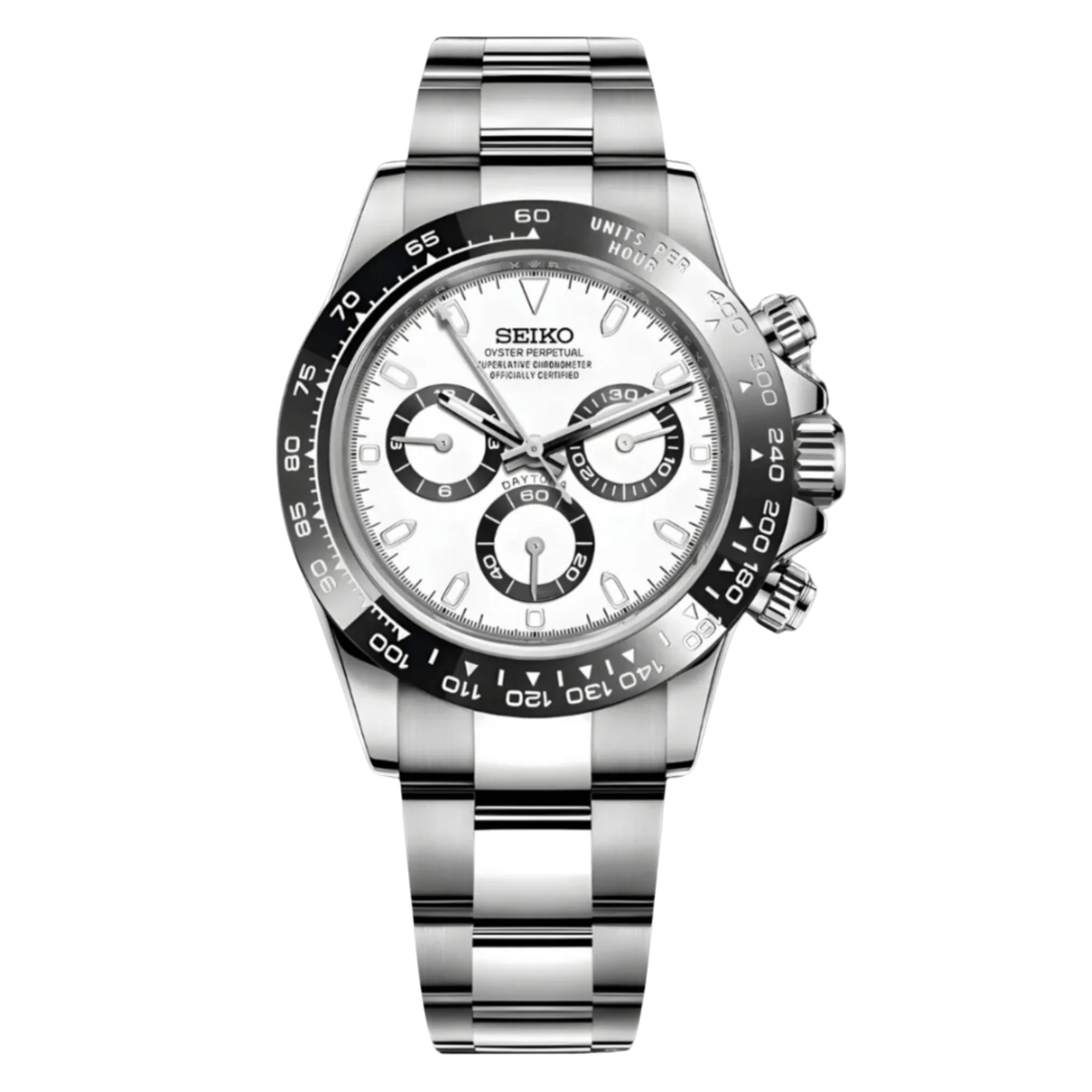 Seitona Panda är modellen som alla väljer just nu, och det med goda skäl. Ren, ikonisk ”panda”-urskiva, en sportig look och en premiumkänsla som passar allt från vardagsbruk till kvällsaktiviteter.